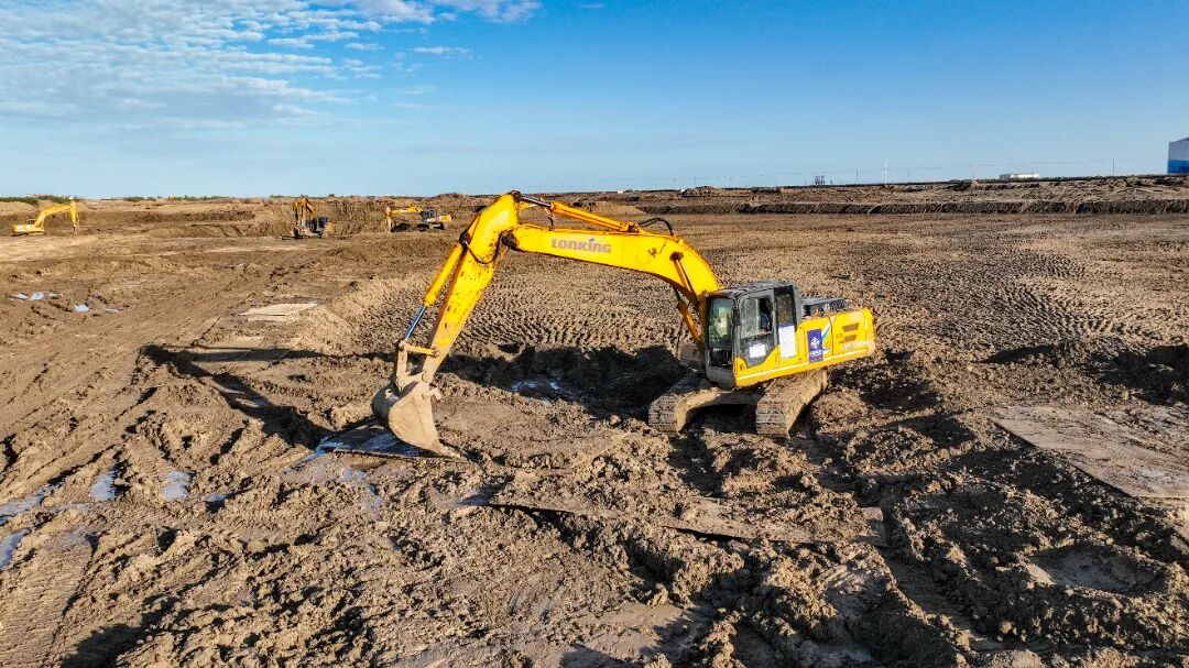 進(jìn)行港池陸上開(kāi)挖施工