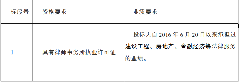 2、資質要求:具有律師事務所執業許可證;