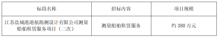 一、?江蘇鹽城港港航勘測設計有限公司?就江蘇鹽城港港航勘測設計有限公司測量船舶租賃服務項目(二次)進行公開招標,誠邀合格的投標人前來報名參加。
