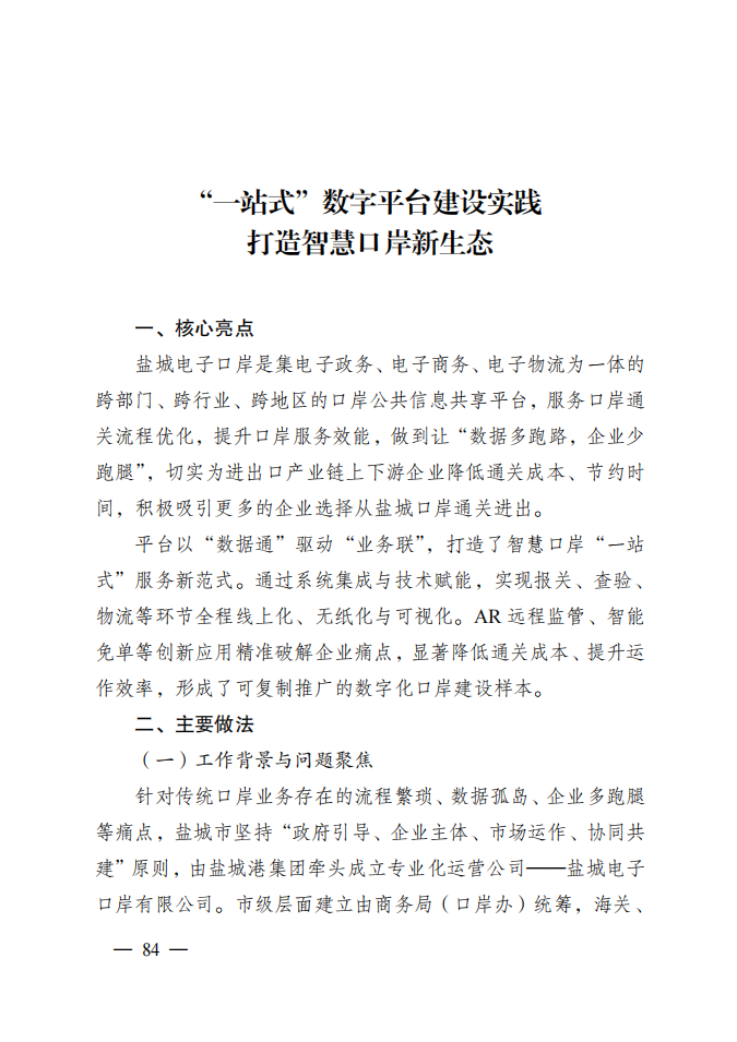 近日,市優(yōu)化營商環(huán)境工作領(lǐng)導(dǎo)小組辦公室發(fā)布《2025年鹽城市優(yōu)化營商環(huán)境優(yōu)秀創(chuàng)新實(shí)踐案例匯編(第一批)》,由市商務(wù)局、鹽城港集團(tuán)聯(lián)合推送的“鹽城電子口岸一站式數(shù)字平臺(tái)建設(shè)實(shí)踐”成功入選。該平臺(tái)以“數(shù)據(jù)通”驅(qū)動(dòng)“業(yè)務(wù)聯(lián)”,通過系統(tǒng)集成與技術(shù)賦能,打造智慧口岸服務(wù)新范式,為全市優(yōu)化口岸營商環(huán)境提供了有力支撐。