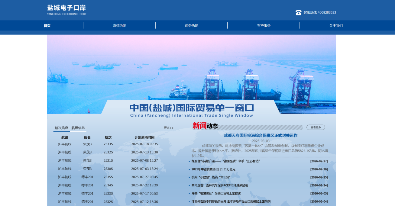 ?平臺(tái)以提升企業(yè)滿意度為核心,通過線上門戶與線下走訪相結(jié)合的方式開展精準(zhǔn)服務(wù),與51家企業(yè)建立長效聯(lián)絡(luò)機(jī)制。同時(shí),通過對接鹽城港集裝箱TOS系統(tǒng),實(shí)現(xiàn)船舶靠離泊、作業(yè)進(jìn)度、集裝箱動(dòng)態(tài)等信息實(shí)時(shí)共享,讓物流狀態(tài)透明可視,徹底改變傳統(tǒng)口岸“信息孤島”局面,顯著提升企業(yè)辦事便利度。