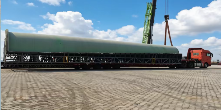 據(jù)悉,此次堆存的36件“陽模”新貨種均系風(fēng)電葉片模具的“家庭成員”,作為國家一類開放口岸,濱海港區(qū)物流公司創(chuàng)新推出“物流+轉(zhuǎn)運+堆存”一體化服務(wù)模式。針對“陽模”體積大、精度要求高等特性,公司專門制定專項作業(yè)方案,劃定2600平方米專屬堆存空間;為便于吊裝與轉(zhuǎn)運,提前對3組84米超長“陽模”進行科學(xué)截斷處理。最終,36件總重量達228噸的“陽模”貨種,僅用2天時間便順利轉(zhuǎn)運至海河聯(lián)運指定區(qū)域完成堆存、保管,拓寬了港區(qū)新貨種作業(yè)品類。