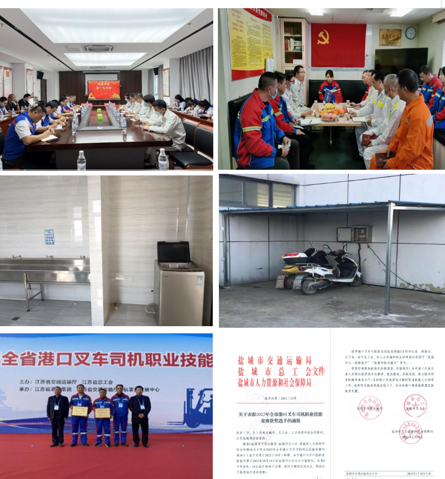 一是加強組織領導。建立了工會、共青團組織機構,明確工作職責。二是支持開展活動。組織文娛趣味活動5次,參加鹽城港集團第二屆職工運動會、慶祝建團100周年等主題活動8次,組織共建聯誼文體活動2次。三是維護職工權益。解決職工待遇、生活問題20余件次。四是引導崗位爭先。叉車能手李正亞、顧熊杰分別榮獲市港口系統叉車司機技能競賽第一名、第二名;組隊代表市交通系統參加省叉車司機技能競賽榮獲團體三等獎。