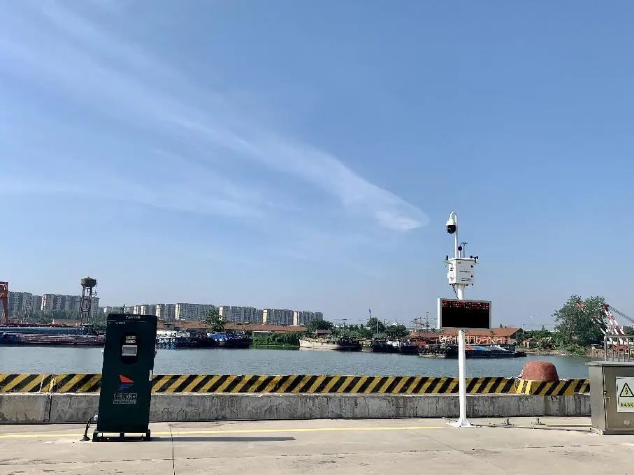 水上服務區岸線綠色能源充電樁、粉塵監測儀。