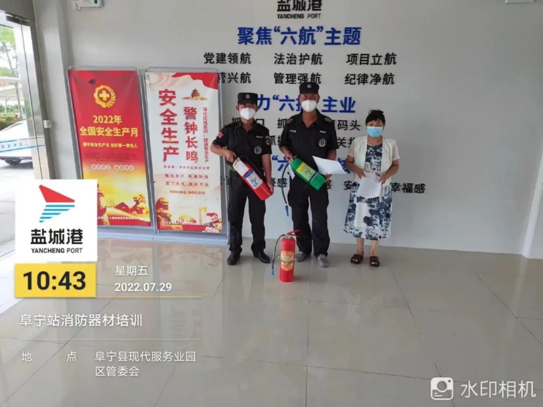 鹽城港水上服務公司員工“安全生產月”夏季消防演練。