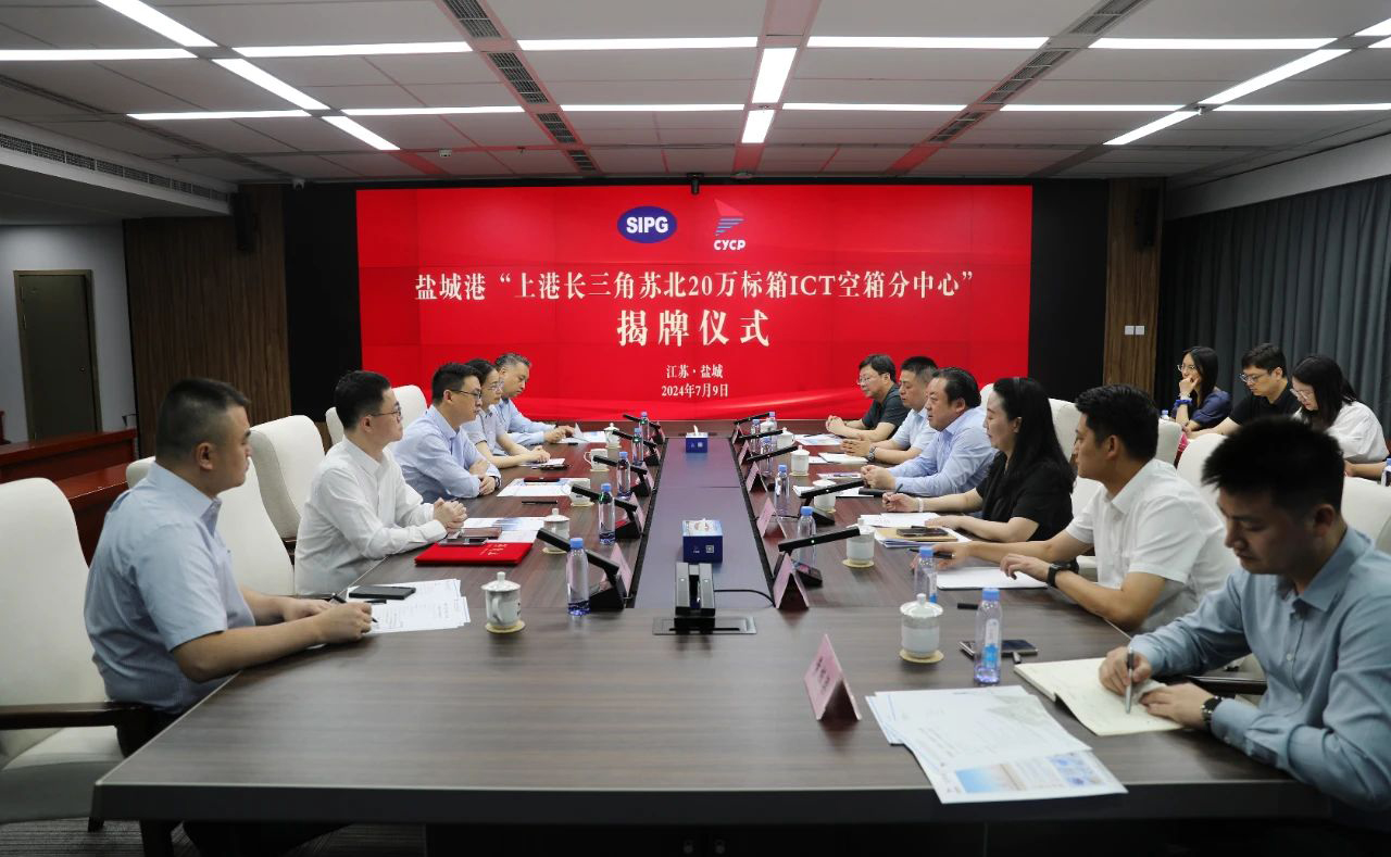 7月9日,鹽城港“上港長三角ICT蘇北空箱分中心”揭牌儀式成功舉行。集團黨委書記、董事長周正雄,上港集團長三角公司總經理陳偉出席活動并為中心揭牌。集團副總經理袁欣,上港集團長三角公司、航運集團相關負責同志及貨主企業代表等參加。