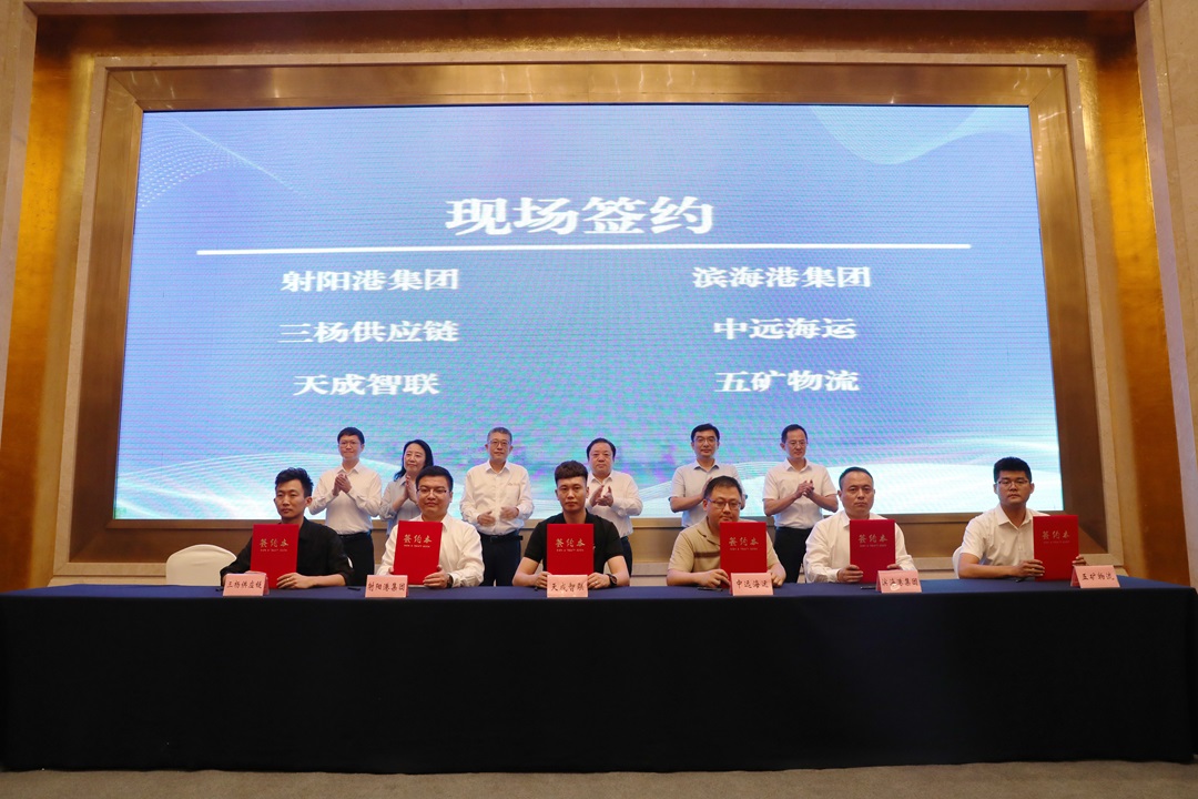 活動現場,大豐港區、濱海港區、射陽港區、響水港區、航運、陸港、保稅、供應鏈等相關負責同志作業務推介并與企業代表簽訂合作協議。