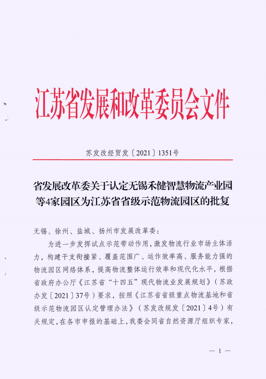 喜訊!近日,響水港海河聯運物流園被省發改委批準為江蘇省省級示范物流園區。
