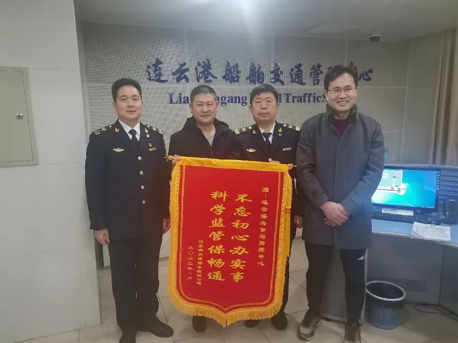 1月29日上午,響水港區港務公司組織部分職工拜訪了連云港海事局指揮中心和灌河海事處,并分別向指揮中心和灌河海事處贈送錦旗,對其一年來對響水港區的關心與支持表示衷心感謝。