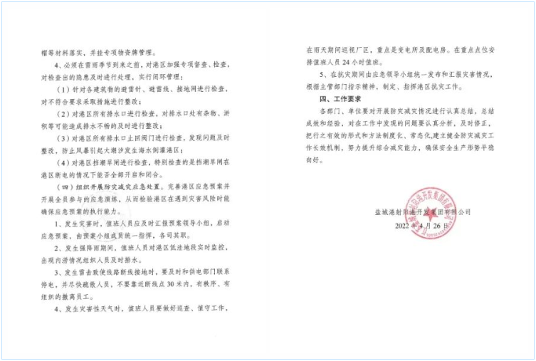 自射陽縣新一輪新冠肺炎疫情爆發(fā)以來,射陽港區(qū)始終堅(jiān)持把保障人民群眾生命財(cái)產(chǎn)安全為首任,深入推進(jìn)各項(xiàng)防災(zāi)減災(zāi)能力建設(shè),明確目標(biāo)任務(wù),逐一抓好落實(shí)。防災(zāi)減災(zāi)工作不是一時(shí)一刻一朝一夕的事情,射陽港區(qū)將根據(jù)自身實(shí)際,結(jié)合以往工作中遇到的突發(fā)情況,認(rèn)真總結(jié)經(jīng)驗(yàn),建立健全防災(zāi)減災(zāi)長(zhǎng)效機(jī)制,全面提升港區(qū)防災(zāi)減災(zāi)能力和員工的避災(zāi)自救能力,為確保射陽港區(qū)完成“經(jīng)營(yíng)興航年”的各項(xiàng)工作目標(biāo)打下堅(jiān)實(shí)基礎(chǔ)。