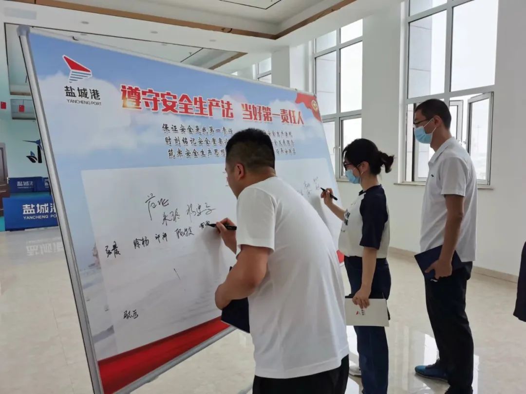 “我宣誓,保證安全是我第一責(zé)任,嚴(yán)格遵守安全生產(chǎn)法規(guī);時(shí)刻銘記安全重要論述,忠實(shí)踐行安全發(fā)展理念;筑牢安全生產(chǎn)思想防線,堅(jiān)決捍衛(wèi)和諧平安港區(qū)?!痹跀S地有聲的宣誓聲中,射陽港區(qū)第一時(shí)間全面啟動(dòng)安全生產(chǎn)月各項(xiàng)活動(dòng),先后開展了專題宣講,并邀請相關(guān)專家分別開展安全法解讀和危險(xiǎn)作業(yè)安全管理培訓(xùn)。