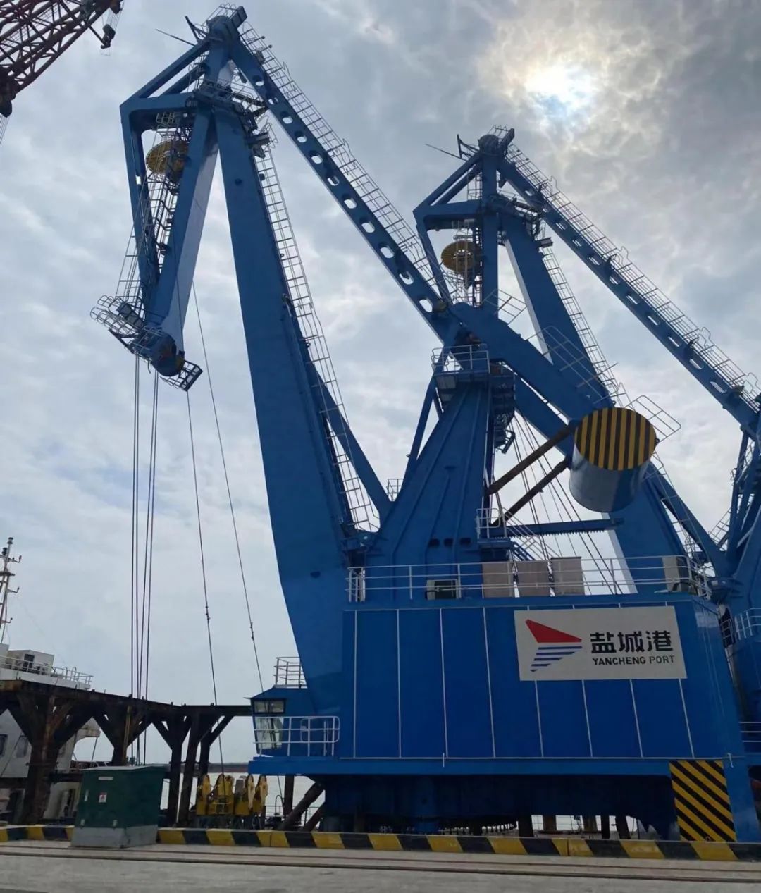7月7日下午,裝載著兩臺門座式起重機的“東方宏立”輪順利靠泊響水港區(qū)重件碼頭小蟒牛作業(yè)區(qū)6#泊位,響水港區(qū)重件碼頭迎來兩位“藍色戰(zhàn)將”。全新的大海藍配色讓人眼前一亮,“藍色戰(zhàn)將”未來將和“紅色家族”一起構成碼頭前沿最靚麗的風景線,為港口生產提質增效注入新動能。