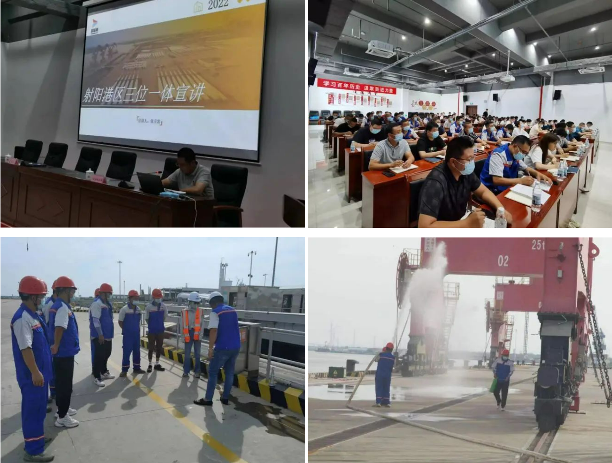 為確保射陽港區(qū)中秋節(jié)日期間安全生產(chǎn)、疫情防控、環(huán)境保護(hù)“三位一體”工作形勢持續(xù)穩(wěn)定,及時(shí)消除各類隱患,使港區(qū)度過一個(gè)安全、祥和的中秋佳節(jié),射陽港區(qū)嚴(yán)格根據(jù)集團(tuán)黨委要求,結(jié)合港區(qū)實(shí)際,扎實(shí)有序開展各項(xiàng)節(jié)日維穩(wěn)工作,全力維護(hù)港區(qū)中秋節(jié)日期間安全穩(wěn)定環(huán)境。
