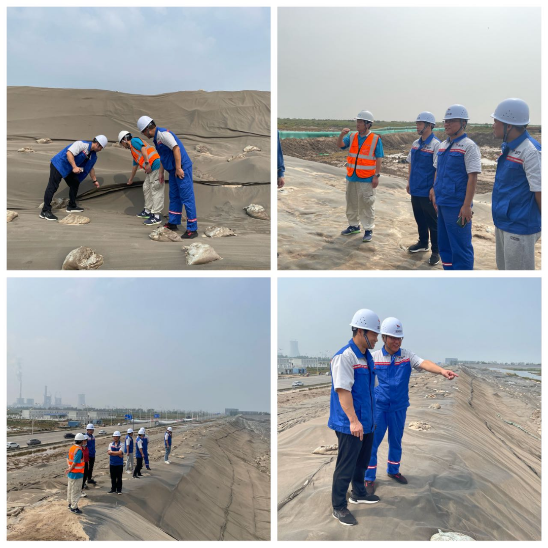 離船后,飛行檢查組立即前往地塊一圍堰處,重點對堰體土工膜接縫質量、內側管線出水口下方土工膜保護措施進行檢查,同時要求施工單位對圍堰進行常態化監測,切實保證圍堰結構穩定。