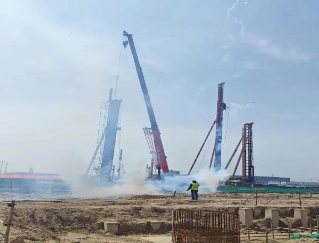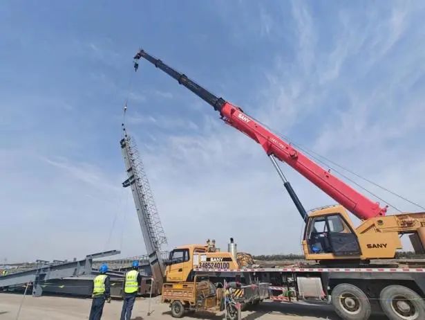 在機械及司號聲中,第一根預制鋼架被徐徐吊起,穩穩地安裝在承臺基礎上,由項目咨詢公司代管的大豐港綜合倉儲物流項目鋼結構工程首吊成功完成,標志著該項目正式進入安裝施工階段,開啟建設新篇章。