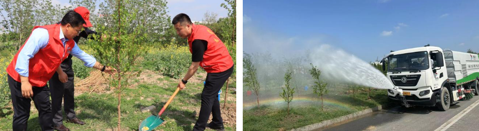 活動現(xiàn)場,大家三人一組,揮鍬挖坑、扶苗填土、提水澆灌,迎著春風干勁十足,合力栽下一株株樹苗。經(jīng)過一番辛勤勞動,100余株新栽種的水杉迎風挺立、錯落有致,點綴出一派生機盎然的春日景象。