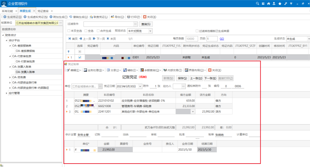據(jù)介紹,通過(guò)集團(tuán)OA系統(tǒng)與浪潮系統(tǒng)進(jìn)行對(duì)接開(kāi)發(fā),差旅費(fèi)、發(fā)票入賬、付款審批、內(nèi)部資金撥付等5類(lèi)單據(jù)實(shí)現(xiàn)了憑證自動(dòng)生成,可覆蓋響水港業(yè)務(wù)30%的憑證數(shù)量。自動(dòng)化憑證不僅有效減少了手工憑證工作量,提高了財(cái)務(wù)人員工作效率,同時(shí)很大程度避免了人工錄入錯(cuò)誤的出現(xiàn),進(jìn)一步提升了憑證信息的準(zhǔn)確性。