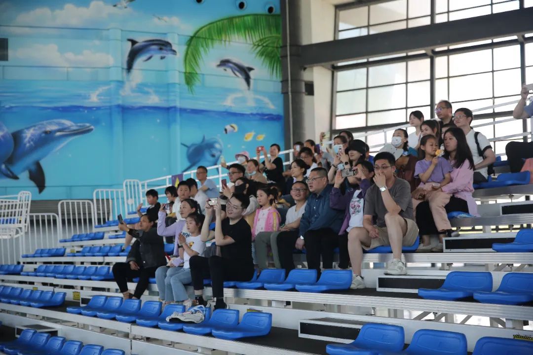 鹽城港大豐港區海洋世界是以海洋為主題的情景劇式互動體驗館,在這里,小朋友們觀看了海豚表演、了解了海洋知識。在柔和的音樂聲中,海豚開始表演節目,從水中一躍而上,濺起晶瑩的水花,而后如同身姿矯健的跳水運動員輕輕落入水中;它們在訓導員的指揮下,盡情地舞動著,展現著優美的舞姿?,F場響起了一陣陣喝彩和掌聲,整個表演都充滿了靈性,觀眾們深深地被海豚的英姿所震撼。表演結束后,現場還有和海豚合影的機會,小朋友們大膽伸出雙手去撫摸它們,現場氣氛熱烈,小朋友們流連忘返。