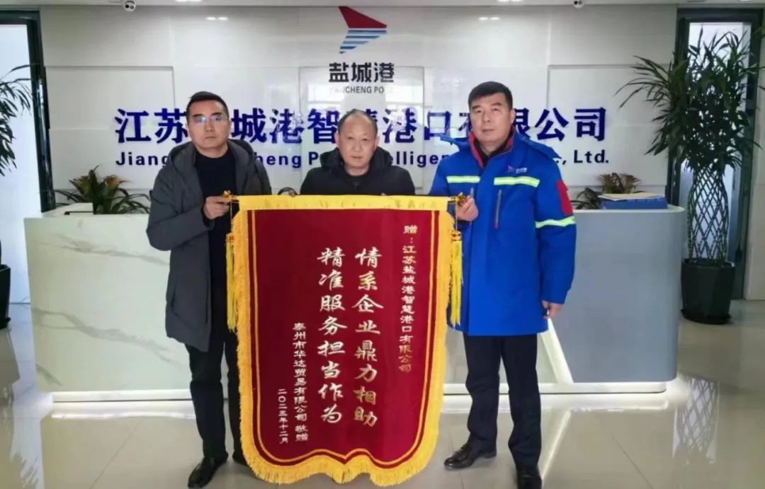 近日,鹽城港智慧港口公司收到泰州市華達貿易有限公司贈送的一面錦旗,錦旗上印有“情系企業鼎力相助