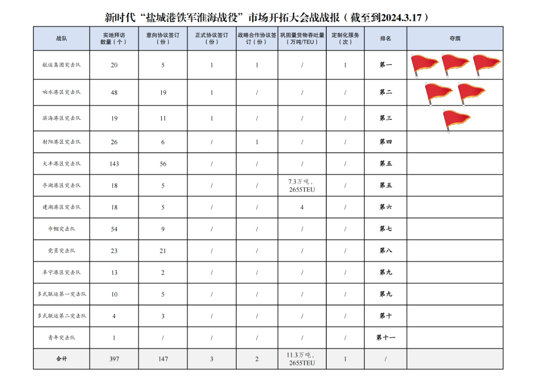 3.簽訂正式協(xié)議數(shù)量3份:其中航運(yùn)集團(tuán)突擊隊1份,響水港區(qū)突擊隊1份,濱海港區(qū)突擊隊1份。
