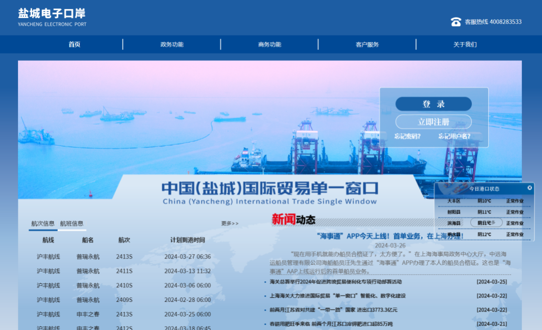 升級優(yōu)化鹽城電子口岸平臺(tái)現(xiàn)有功能,持續(xù)推進(jìn)鹽城港網(wǎng)上營業(yè)廳建設(shè),促進(jìn)數(shù)據(jù)互通共享,打造面向全流程、全業(yè)務(wù)、全方位服務(wù)的鹽城電子口岸+鹽城港網(wǎng)上營業(yè)廳一體化服務(wù)平臺(tái)。