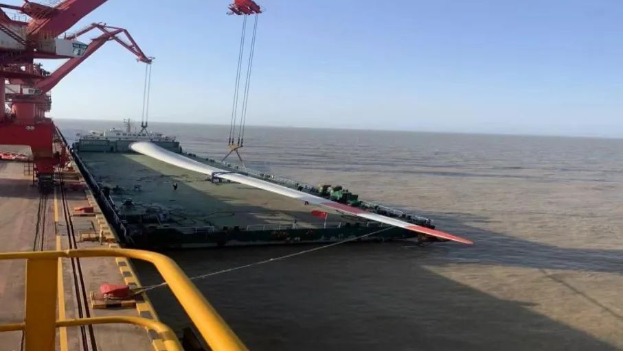 據了解,本次作業6件設備共計2.4萬方,單片吊裝僅用時13分鐘,作業總耗時2.5小時,不僅吊裝效率達到國內一流領先水平,同時一舉刷新大豐港區內貿葉片裝船方量紀錄,充分彰顯了鹽城港大豐港區風電產業裝卸的強勁實力。