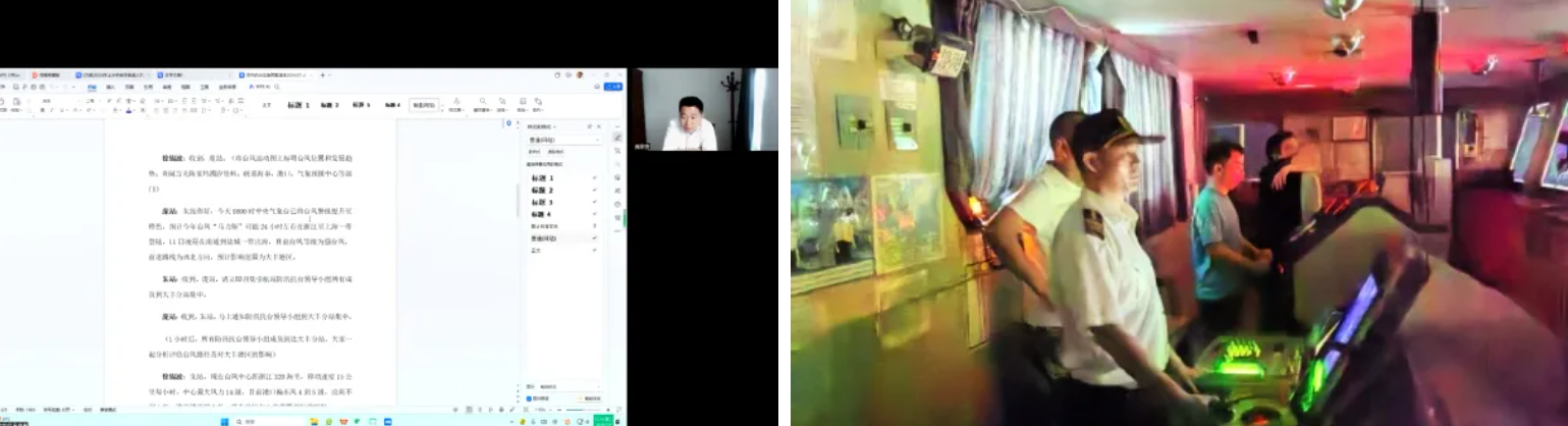 夏季不僅僅有高溫,還有惡劣天氣。為保障船舶安全,引航站做好防臺防汛準備工作:召開線上會議討論應急方案;線下實地考察航道內水文條件。同時安排人員全天候值班值守,為保障船舶進出港安全提供堅實的引航技術支持。