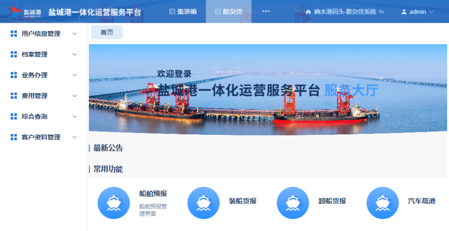 鹽城港網(wǎng)上營業(yè)廳響水港散雜貨模塊的上線,不僅優(yōu)化了港口的業(yè)務(wù)流程,同時實現(xiàn)了信息的實時共享和透明化管理。客戶可以通過網(wǎng)上營業(yè)廳輕松查詢貨物狀態(tài),辦理包括船舶備案、船舶預(yù)報、船舶報港、汽車報港等在內(nèi)的相關(guān)手續(xù),大幅縮短了業(yè)務(wù)辦理時間,提高了工作效率。