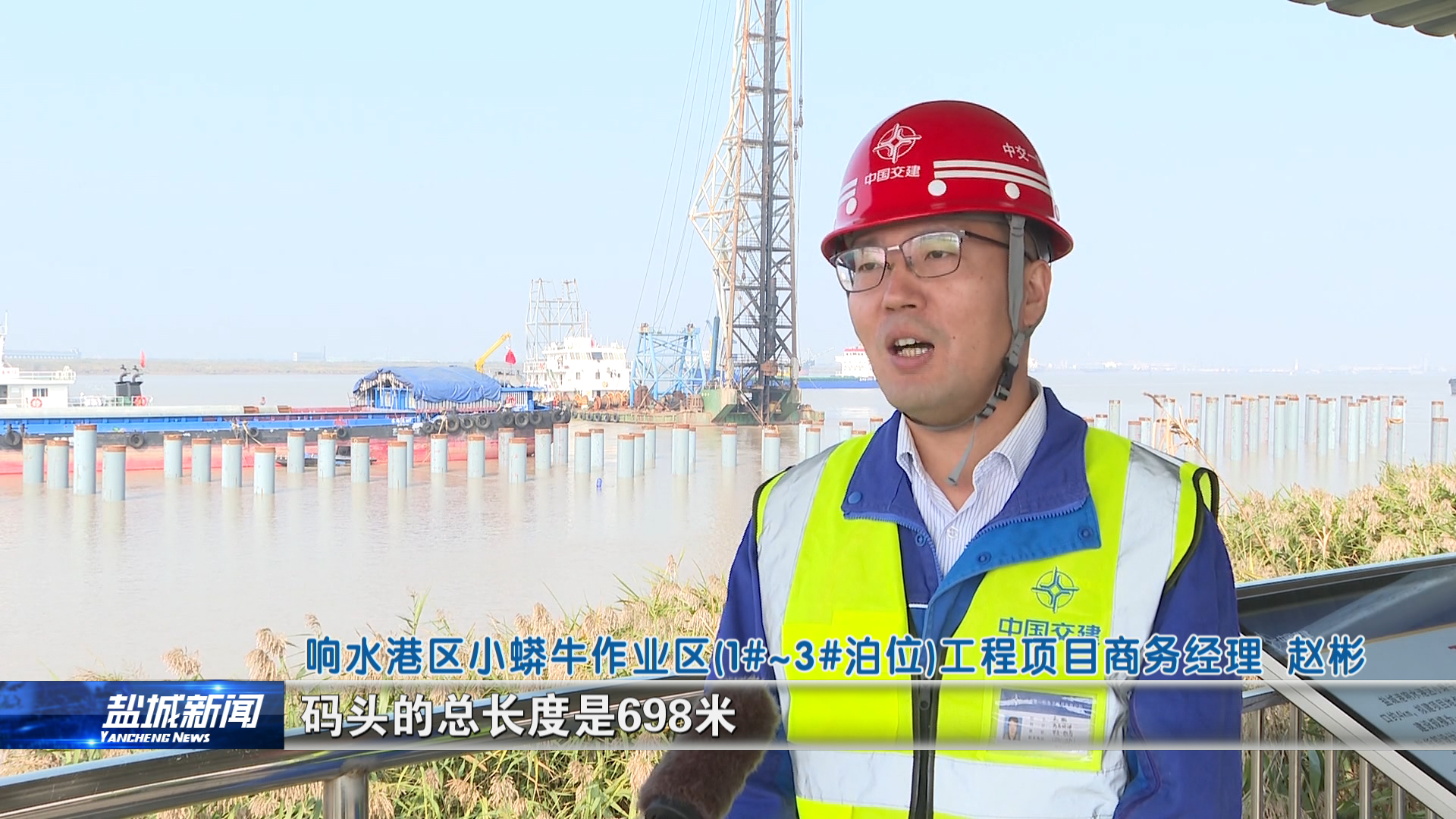 我們現在1到3號泊位,碼頭的總長度是698米,現在主要進行打樁施工,我們總樁的根數,應該是在1137根,現在目前已經打設了306根,占比在27%左右。