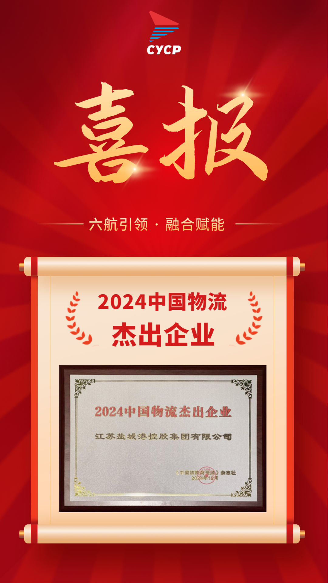鹽城港集團榮獲“2024中國物流杰出企業”獎