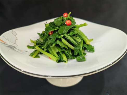 精選鮮嫩的板藍根苗作為主料,洗凈后沸水快速焯燙,恰到好處地保留了其脆嫩的口感與豐富營養。隨后,以秘制醬汁調味,再撒上香氣四溢的蒜末、鮮紅的辣椒絲等佐料,淋上一勺滾燙的熱油,“刺啦” 一聲,春天的味道瞬間被激發,脆嫩爽滑、開胃解膩。