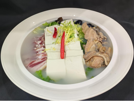 精選肥嫩的河蚌,經過細致處理,去除雜質后,蚌肉質地緊實且富有彈性。咸肉選取肥瘦相間的優質部位,經過腌制風干,咸香醇厚,風味獨特。將切成小塊的嫩滑豆腐與河蚌、咸肉一同燉煮,慢火細熬間,河蚌的鮮美、咸肉的醇厚油脂逐漸滲入豆腐之中,鮮香軟嫩,鮮香四溢。