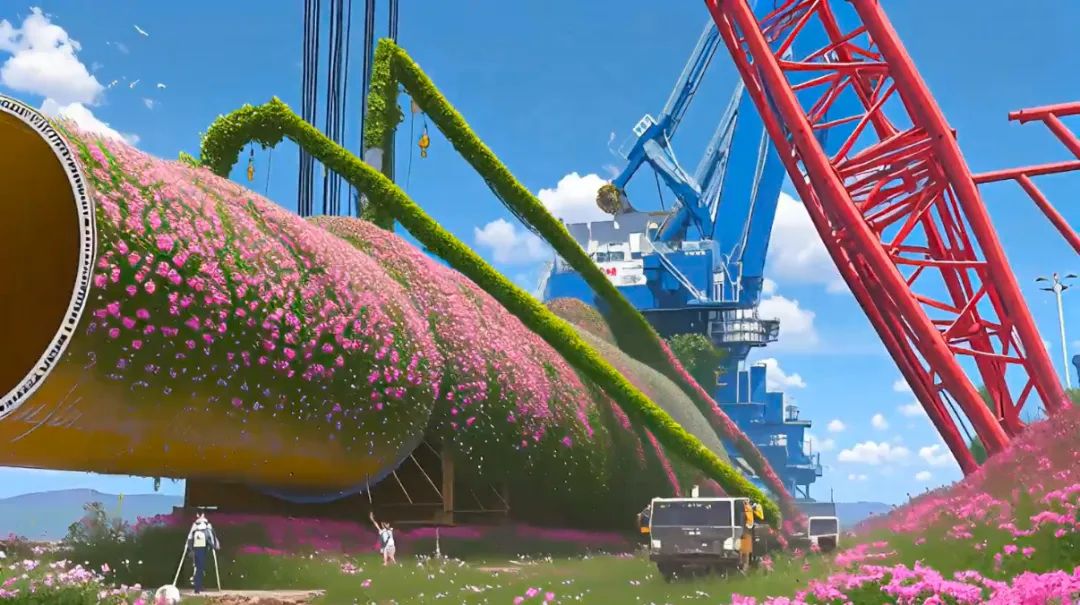 花朵順著起重機的臂膀攀爬