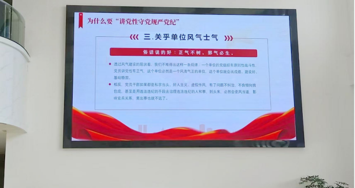 嚴格規矩意識。定期開展紀律規矩專題教育,深刻剖析典型案例,以案為鑒敲響廉潔警鐘;將辦公走廊打造成“廉政文化長廊”;開辟融思想性、政策性、觀賞性、教育性于一體的廉政宣傳陣地,讓廉潔文化入腦入心更促行。