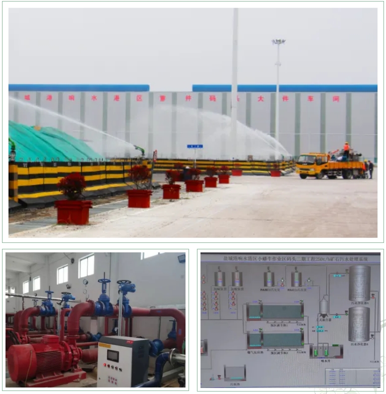 創(chuàng)新引入“分質(zhì)水循環(huán)+負(fù)碳工藝”概念:利用現(xiàn)有“三站”與湖水打通引湖造景的同時,利用湖水曝氣作用實現(xiàn)生態(tài)無害化處理生成“再生水”,用于綠化澆灌與堆場噴淋,年預(yù)計減少堆場污水超數(shù)十萬噸、節(jié)約市政用水成本45%、驅(qū)動生產(chǎn)單元降耗17%、碳強(qiáng)度下降23%,實現(xiàn)“三水”閉環(huán)的綠色發(fā)展模式,同時汛期可以有效降低85%的內(nèi)澇風(fēng)險。后續(xù)聯(lián)動現(xiàn)有堆場噴淋和粉塵監(jiān)測系統(tǒng),根據(jù)風(fēng)、塵信息實時調(diào)控,既降塵抑污,又提升作業(yè)環(huán)境質(zhì)量,實現(xiàn)水資源高效循環(huán)利用,形成可復(fù)制的綠色生態(tài)發(fā)展新模式。