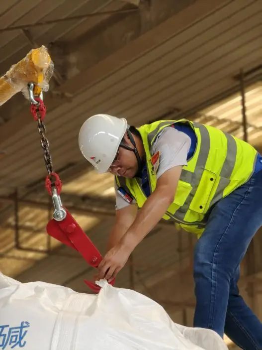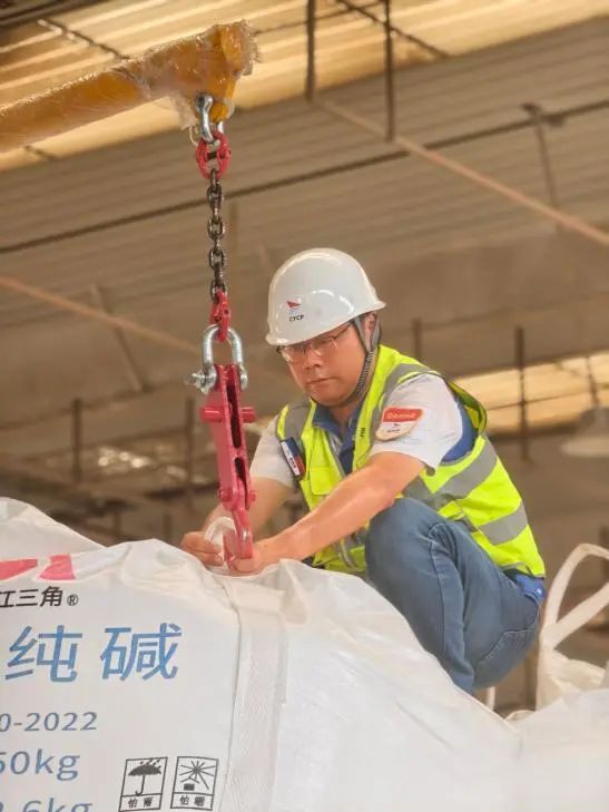 純堿是一種極其重要的工業(yè)原料,廣泛應(yīng)用于玻璃、輕紡、制鹽和冶金等項目,被譽(yù)為“化工之母”。為保障純堿業(yè)務(wù)首航順利,響水港區(qū)精心籌備,組織生產(chǎn)、倉儲多部門聯(lián)動,細(xì)化作業(yè)環(huán)節(jié),克服酷暑考驗,倉儲組長王玨更是24小時駐守生產(chǎn)一線,工裝被汗水反復(fù)浸透,但依然堅守。
