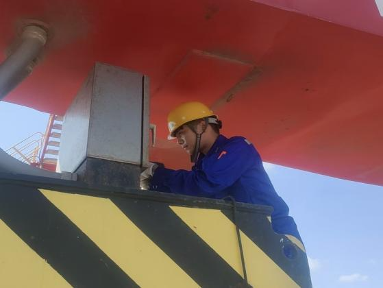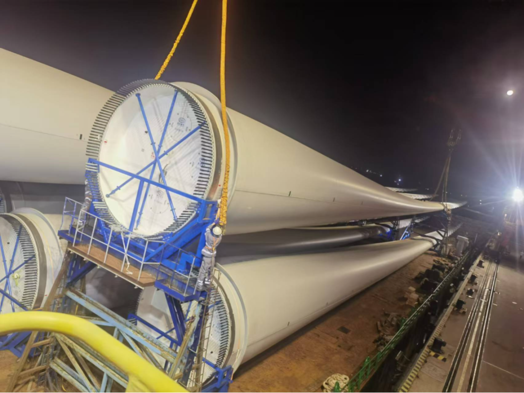為避開午間極端高溫,港區啟動“搶潮水、戰早晚、避正午”彈性調度,夜間作業至上午9點成為了葉片吊裝黃金時段。門機司機在晨光中精準操控吊臂:“為保證船舶乘潮進港,就要求趕早作業的高效率,才能避免少‘蒸’三小時‘正午桑拿’。”后勤部門同步協調檢修宿舍空調,確保員工每天避高溫休息質量。