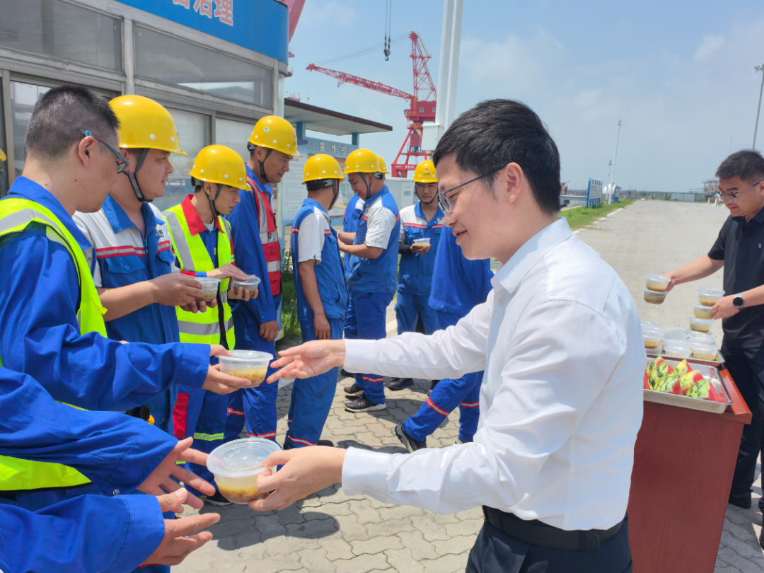 為保證碼頭各項作業有序進行,港區對各作業界面的供水、供電設備、線路全面檢修、維護,確保高溫季節不斷電、不斷水,解除后顧之憂。風電公司以召開座談會、進行防暑培訓、發放物資等形式,保證外包單位人員落實防暑降溫各項措施落到實處,為高溫天氣安全生產保駕護航。