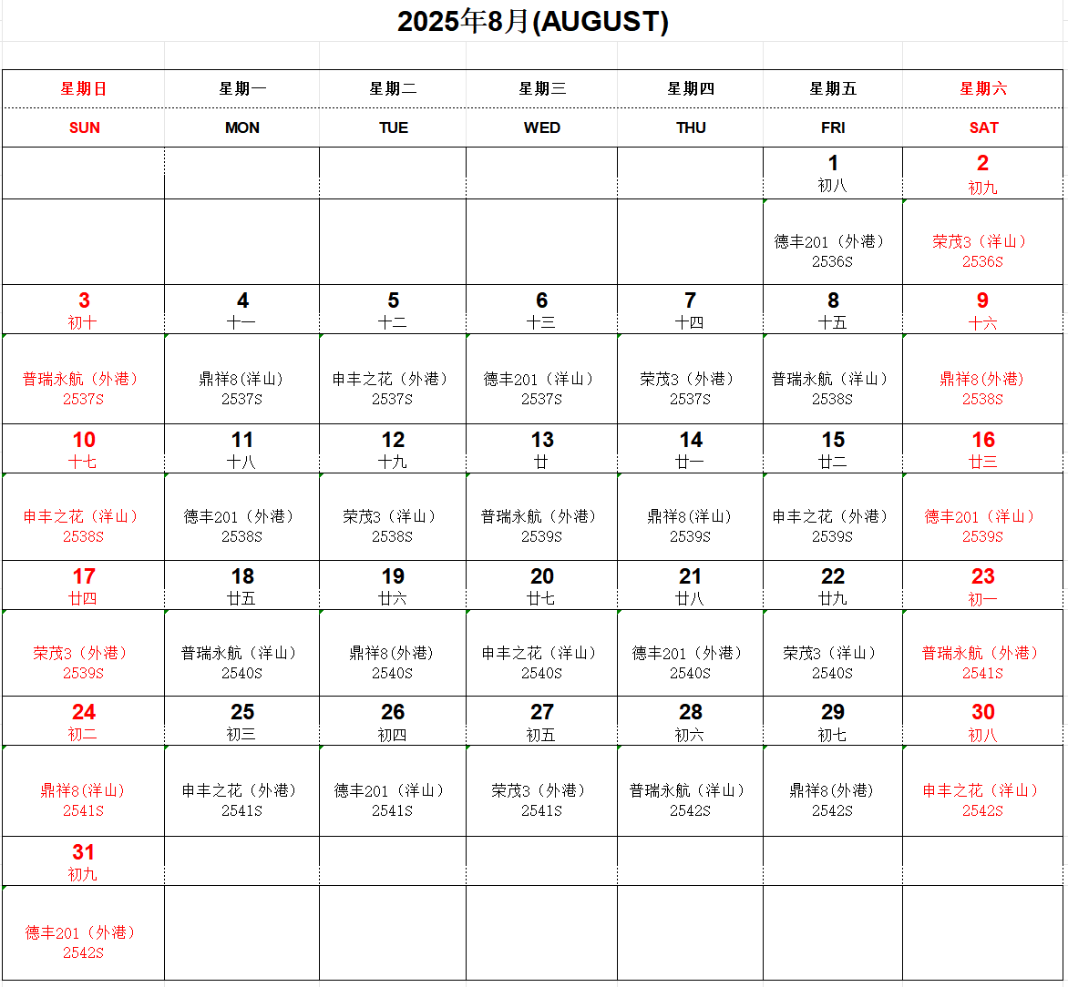 船期速遞丨叮咚!“滬鹽專線”八月船期表已到達