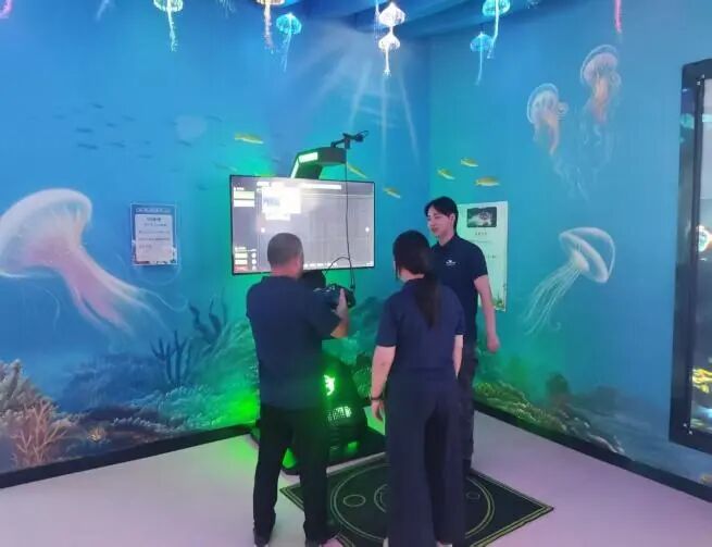“您好,體驗4D影院前請確認安全帶扣緊,觀影中若有不適可隨時示意。”在“動感海洋影院”入口,老員工成龍江正向新員工朱宇林、劉莉娟演示服務話術與應急要點。老員工結合升級后板塊特色,從場館動線引導、展品講解到4D設備、VR區安全操作,開展“一對一”帶教,傾囊相授服務經驗。“跟著成叔學習,我不僅記熟了知識點,還會按游客年齡調整講解方式,現在應對提問不慌了。”新員工劉莉娟自信說道。