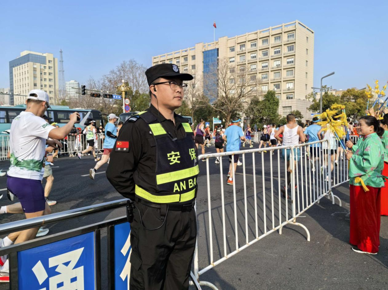 比賽當天凌晨5點,150名安保人員提前到崗就位,配合交警設置隔離設施、疏導過往車輛、行人通行,全程緊盯賽道動態,精準把控車流與人流放行時機,在保障跑友安全通行的同時,最大限度降低賽事對市民出行的影響。以責任擔當兌現“你奔跑、我守護”的初心使命,再次彰顯公司大型活動安保硬實力。