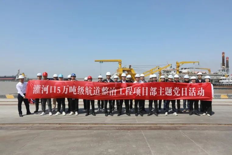 為進一步堅持和加強黨的全面領導,增強黨員意識,確保各項工作始終沿著正確的航向前進。近日,港灣建設集團在灌河口5萬噸航道整治工程項目部與相關參建單位聯合主題黨日活動。港灣建設集團、中交(天津)疏浚工程有限公司、中交天津航道局有限公司、江蘇筑港建設集團有限公司、江蘇科興項目管理有限公司相關人員參加。