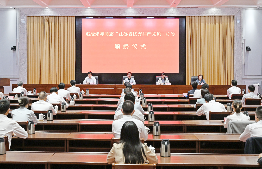 頒授儀式前,徐纓等會見了朱陳同志親屬。頒授儀式上,市委常委、組織部部長費堅宣讀了省委《關于追授朱陳同志“江蘇省優(yōu)秀共產黨員”稱號的決定》。朱陳同志親屬孫麗霞代表全家表達了感激之情。她表示,將在平凡的工作中腳踏實地做好本職工作,不忘初心、牢記使命,不辜負黨和組織的厚愛。