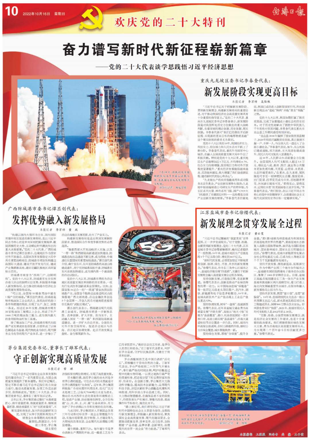 刊發《江蘇鹽城市委書記徐纓代表:新發展理念貫穿發展全過程》