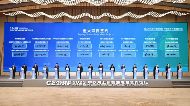 論壇發(fā)布了《2023中歐海上新能源發(fā)展合作論壇鹽城宣言》《公開征集海上光伏、海上能源島與新能源高比例應(yīng)用試點(diǎn)示范技術(shù)方案》《中歐漂浮式海上風(fēng)電關(guān)鍵技術(shù)與產(chǎn)業(yè)鏈對比分析與合作潛力研究報(bào)告》等,簽約了25個(gè)重大項(xiàng)目,總金額294.8億元,為進(jìn)一步推動(dòng)海上新能源技術(shù)創(chuàng)新與產(chǎn)業(yè)升級、深化中歐務(wù)實(shí)合作注入新動(dòng)能。