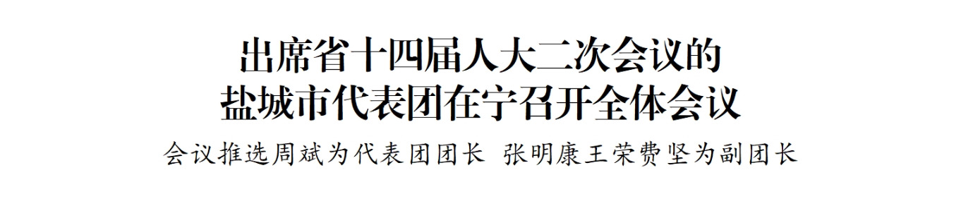 江蘇省第十四屆人民代表大會(huì)第二次會(huì)議將于1月23日上午在南京開幕。22日晚,鹽城市代表團(tuán)在駐地召開全體會(huì)議,傳達(dá)學(xué)習(xí)省兩會(huì)黨員負(fù)責(zé)同志會(huì)議精神和省委書記信長星講話要求,推選代表團(tuán)團(tuán)長、副團(tuán)長,宣布小組召集人名單,審議有關(guān)草案。