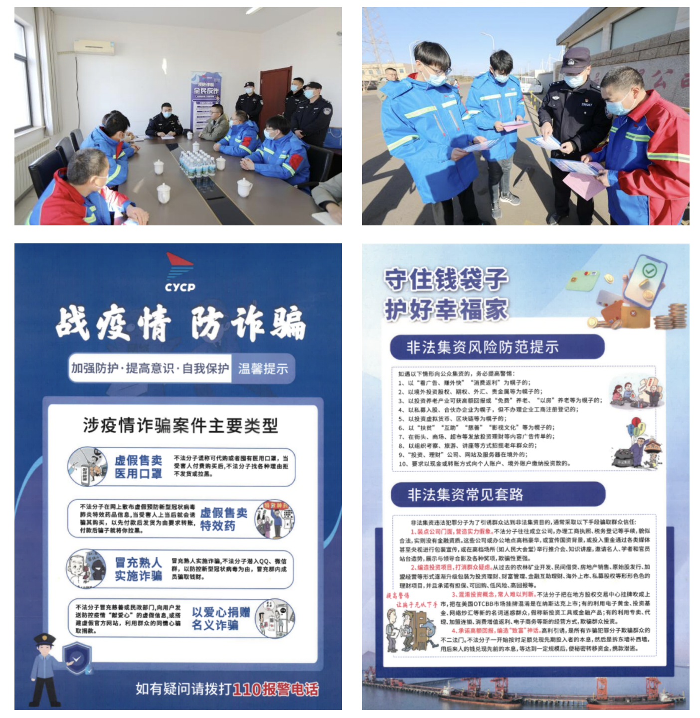 為深入貫徹落實(shí)鹽城港集團(tuán)關(guān)于“法治護(hù)航”的部署要求,加速推進(jìn)高質(zhì)量融合發(fā)展步伐,增強(qiáng)企業(yè)風(fēng)險(xiǎn)防范能力,保障生產(chǎn)經(jīng)營(yíng)有序運(yùn)行,近日,鹽城港大豐港開(kāi)發(fā)集團(tuán)以“守住錢(qián)袋子,守護(hù)幸福家”為主題開(kāi)展反詐宣傳活動(dòng),通過(guò)警企合作,引導(dǎo)廣大干部職工增強(qiáng)反詐意識(shí),為進(jìn)一步營(yíng)造法治化營(yíng)商環(huán)境奠定堅(jiān)實(shí)基礎(chǔ)。