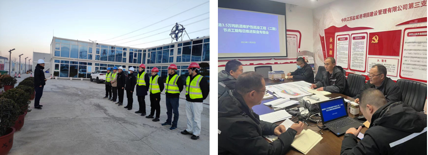 作為集團(tuán)成立以來的第一個(gè)臨時(shí)黨支部,中共江蘇鹽城港射陽港3.5萬噸航道工程臨時(shí)支部委員會(huì)深入學(xué)習(xí)貫徹黨的二十大精神,傳承弘揚(yáng)不怕困難、不畏艱險(xiǎn),勇于斗爭、敢于勝利的鐵軍精神,發(fā)揮基層黨組織和共產(chǎn)黨員戰(zhàn)斗堡壘和先鋒模范作用,全面推行“黨建+項(xiàng)目管理”“黨建+安全生產(chǎn)”工作,積極開展工程建設(shè)管理政策、施工工藝措施等方面研究,充分吸收合理化建議,協(xié)同配合、加強(qiáng)調(diào)度,及時(shí)會(huì)商解決遇到的困難和問題,形成推進(jìn)項(xiàng)目驗(yàn)收的強(qiáng)大工作合力。