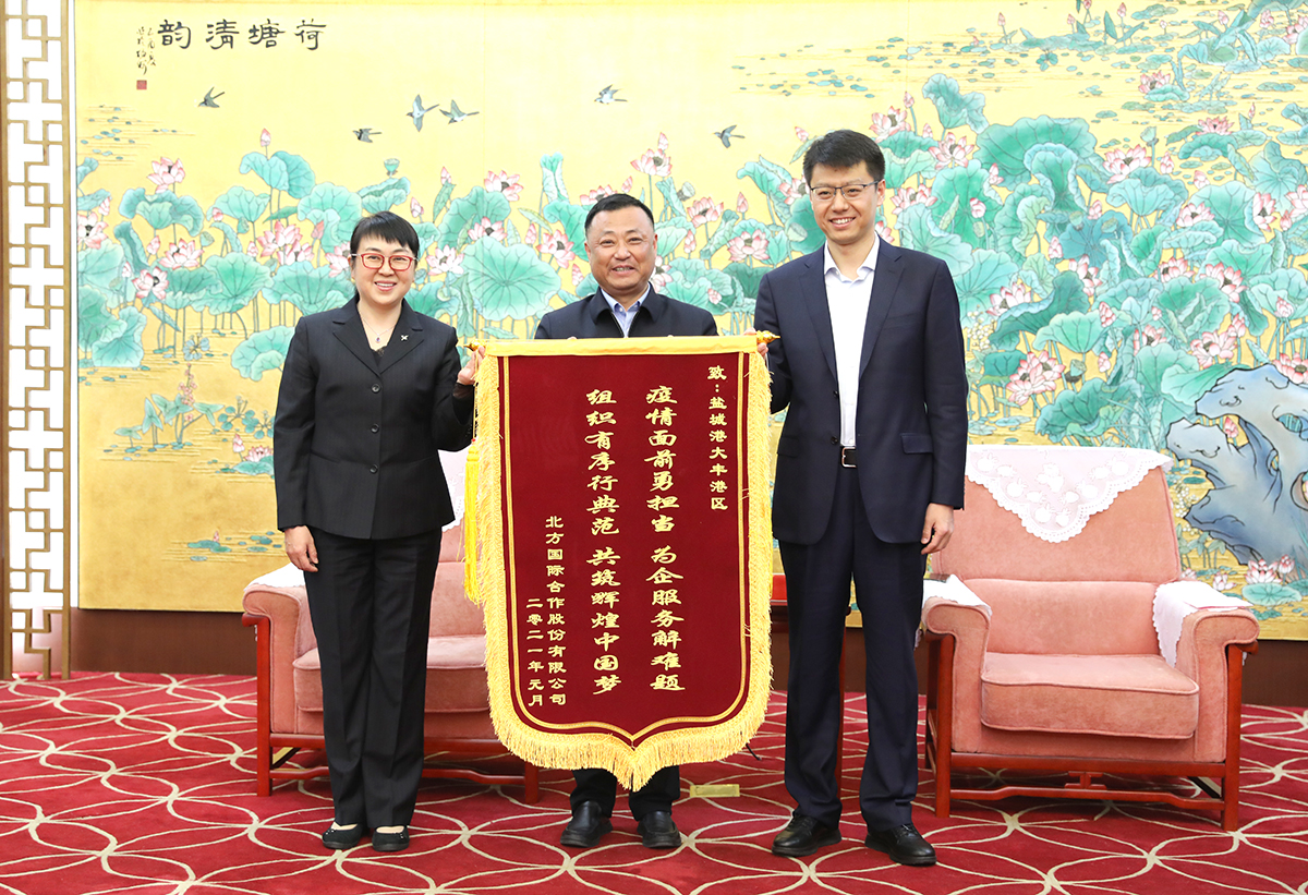 3月2日上午,北方國(guó)際合作股份公司總經(jīng)理助理劉博一行專程趕赴鹽城,向集團(tuán)贈(zèng)送錦旗,并就相關(guān)項(xiàng)目對(duì)接展開洽談。副市長(zhǎng)蔣巍會(huì)見“北方國(guó)際”客人。集團(tuán)黨委委員、紀(jì)委書記周旭東參加會(huì)見并現(xiàn)場(chǎng)接受錦旗。